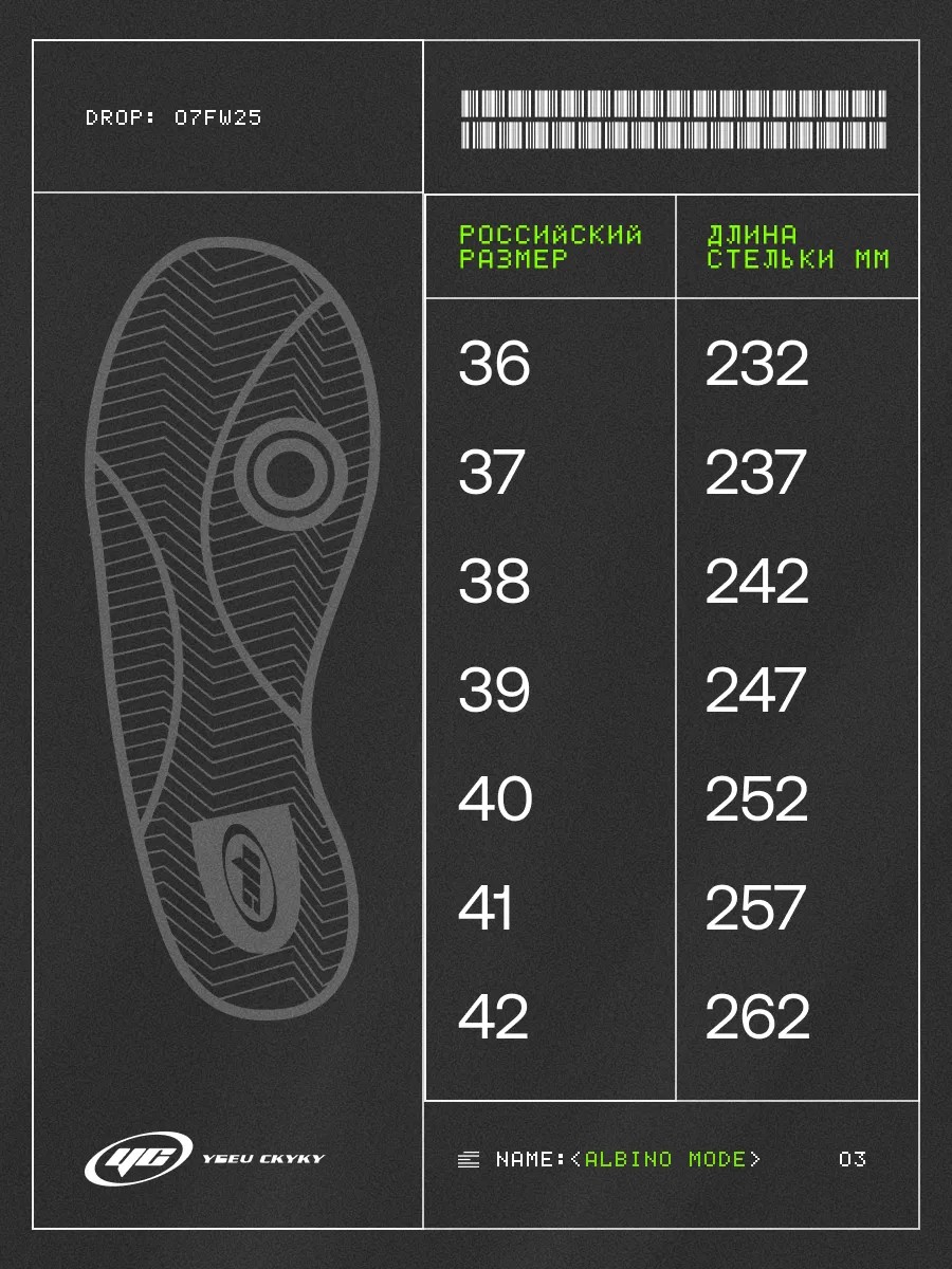 ALBINO MODE На вид — ангел. На деле — белый демон, от которого крыша едет. Эти ботинки будто стерли всю систему и поставили на загрузку новую, без фильтров.