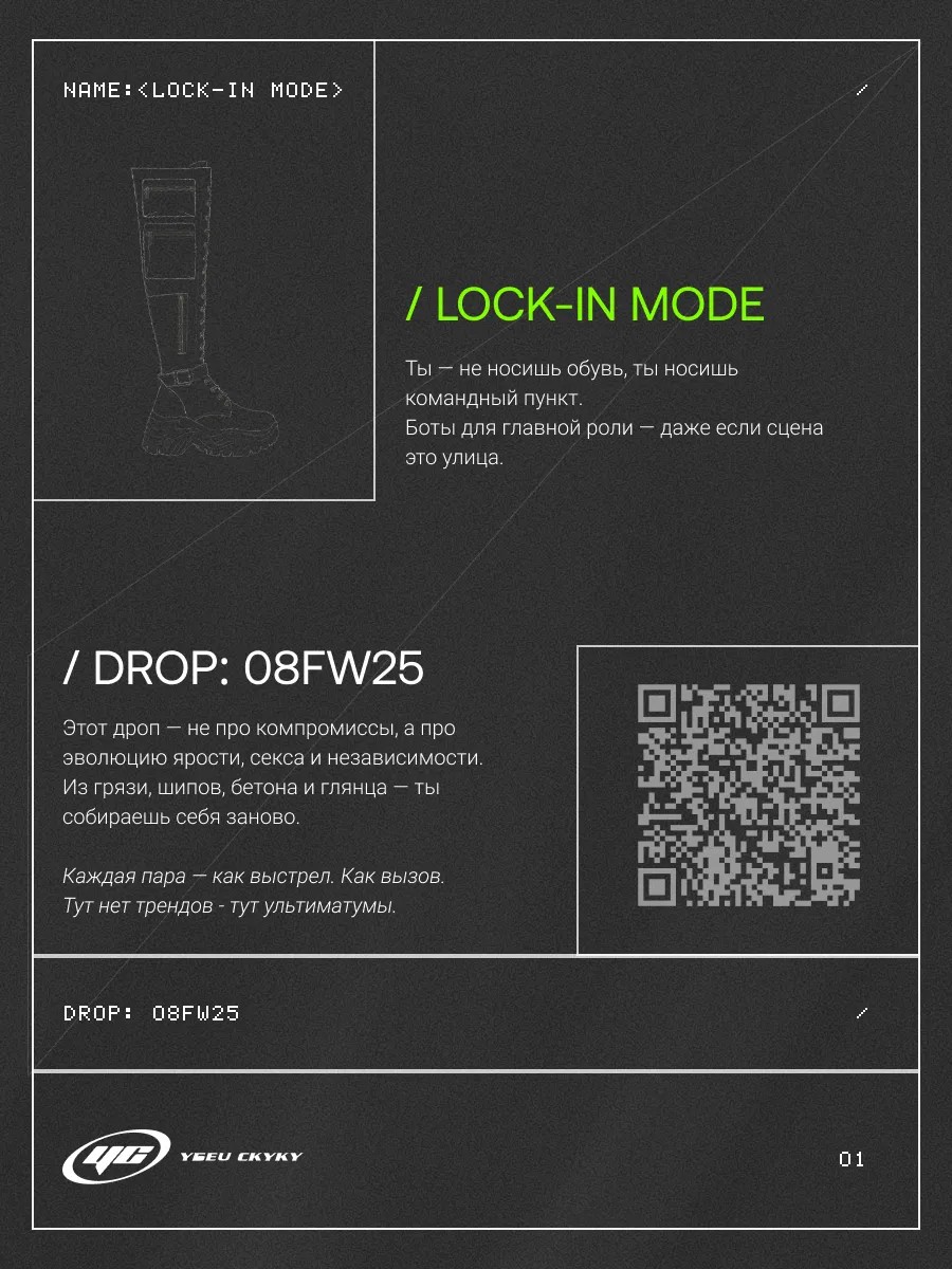 Ты — не носишь обувь, ты носишь командный пункт. Боты для главной роли — даже если сцена это улица.